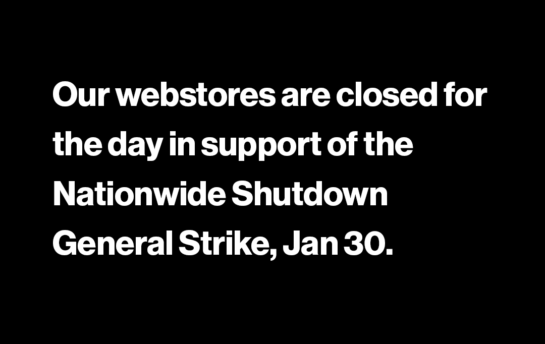 Our webstores are closed for the day in support of the Nationwide Shutdown General Strike, Jan 30.